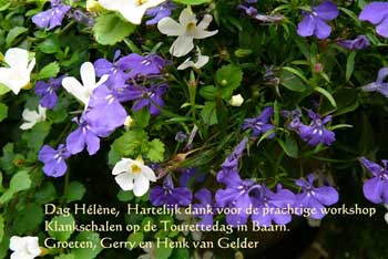 Ook werd het als heel fijn ervaren dat we na afloop van elke cursusdag in overleg enkele klankschalen mee naar huis konden nemen om thuis te kunnen oefenen. Dit alles werd in een relaxte sfeer gebracht; je had tijd om in je eigen tempo de dingen te doen. Er werd zo ook voldoende ruimte gecreëerd om te vragen en te ervaren. Het was leuk om te zien dat we, allemaal, in korte tijd progressie maakten. Kortom, wij hebben het als zeer prettig ervaren. En het heeft ons verrijkt. Hélène bedankt voor alles...